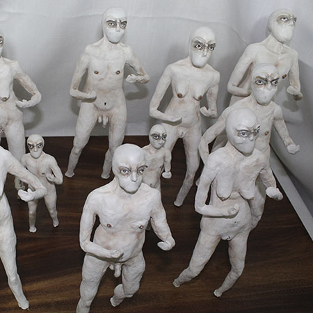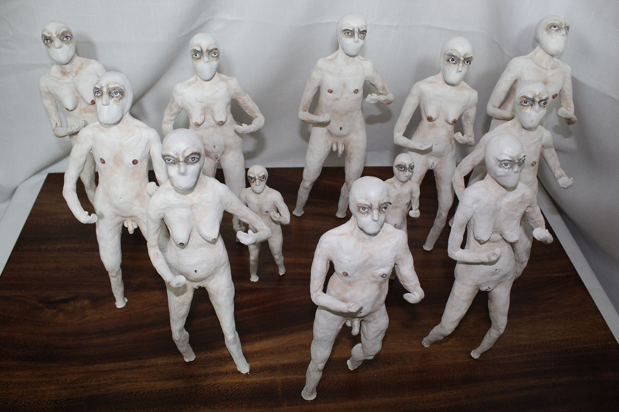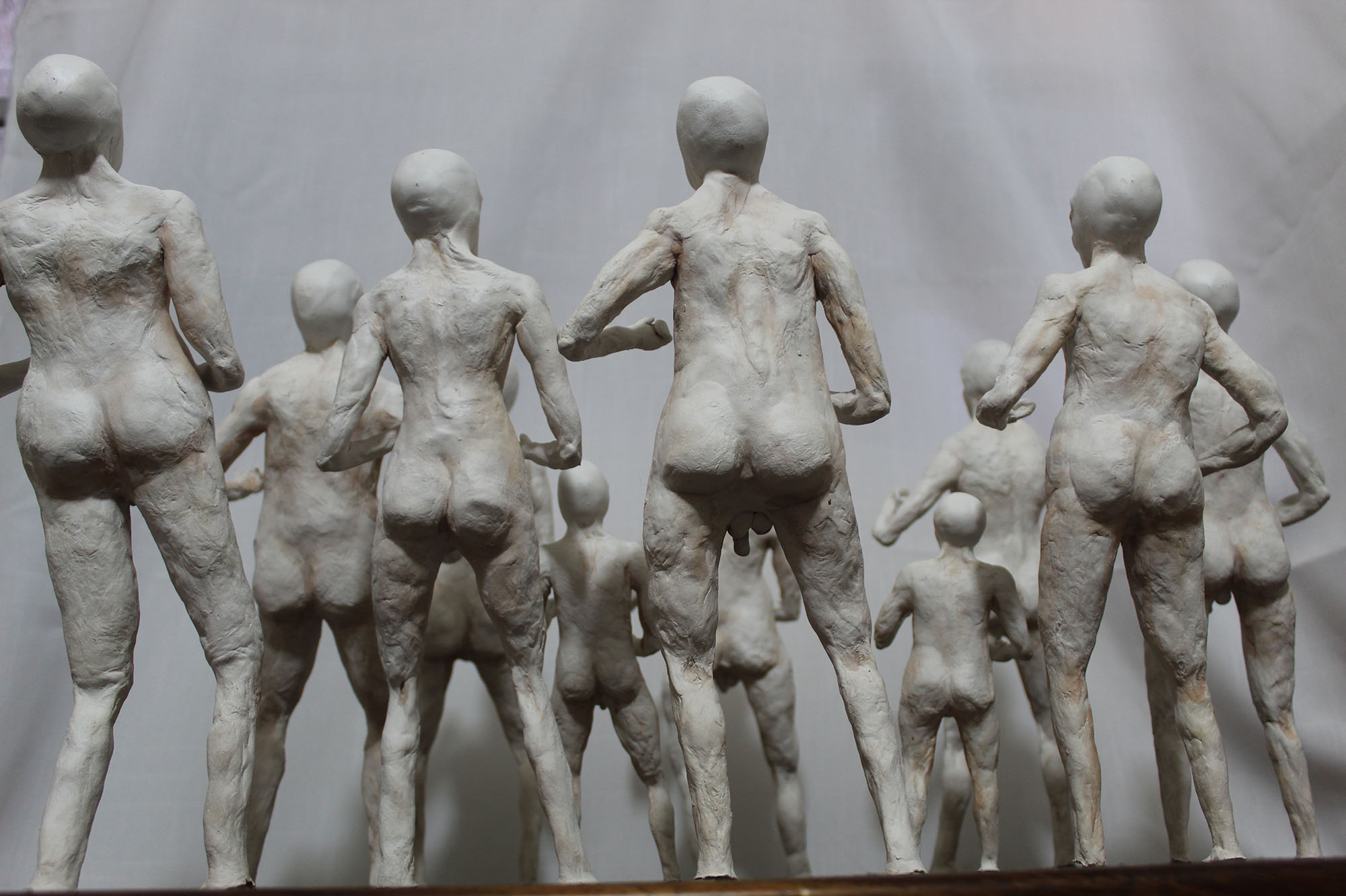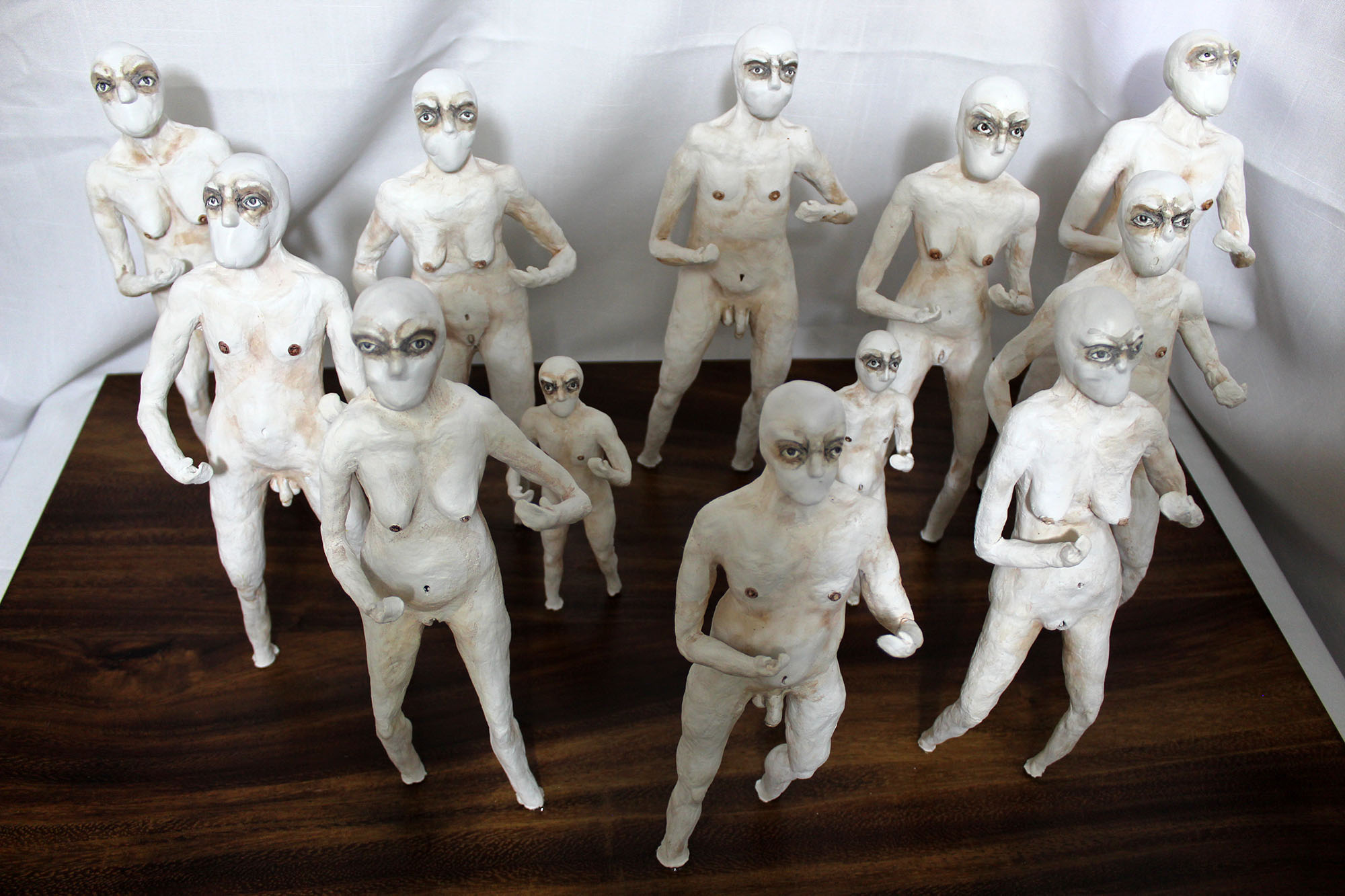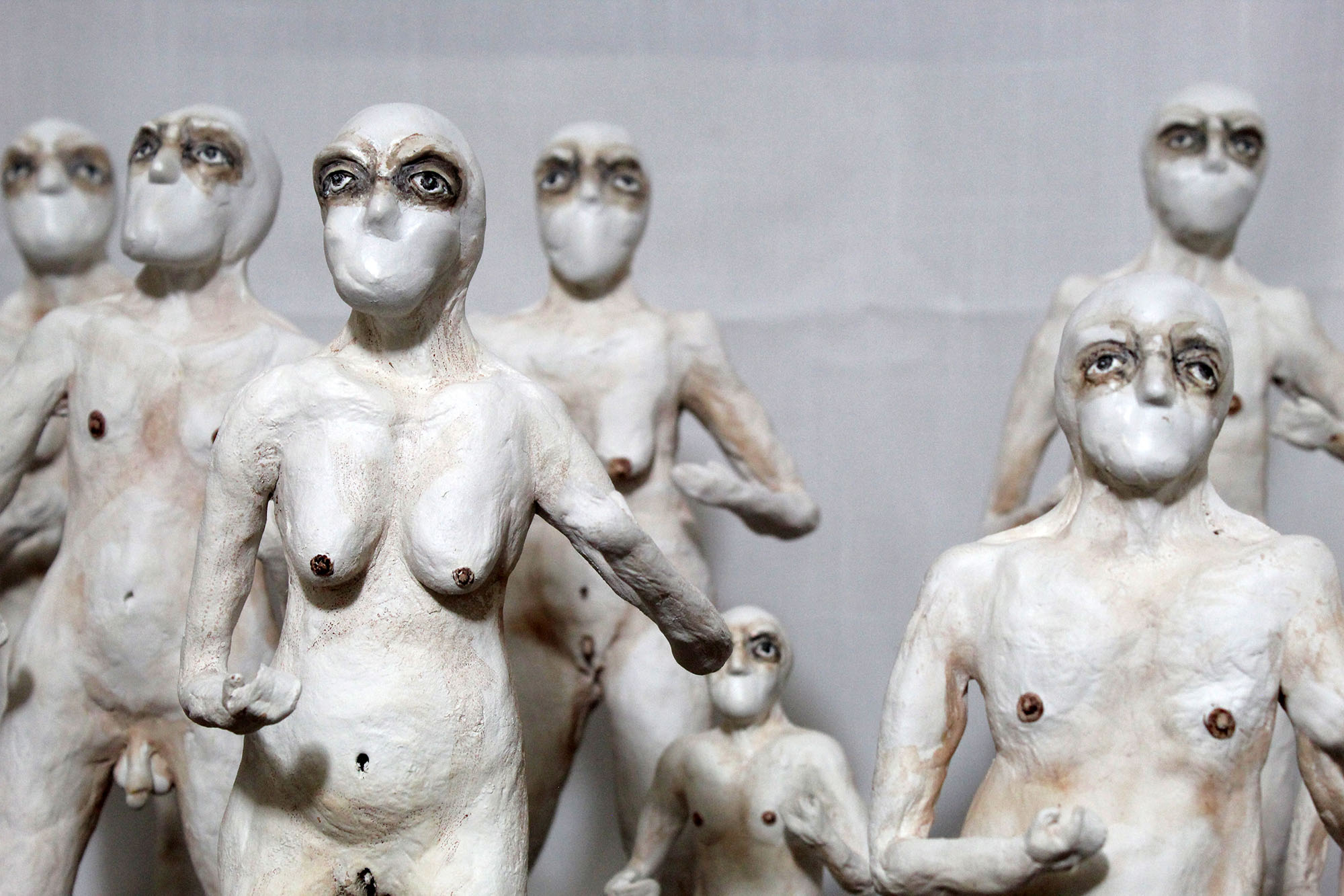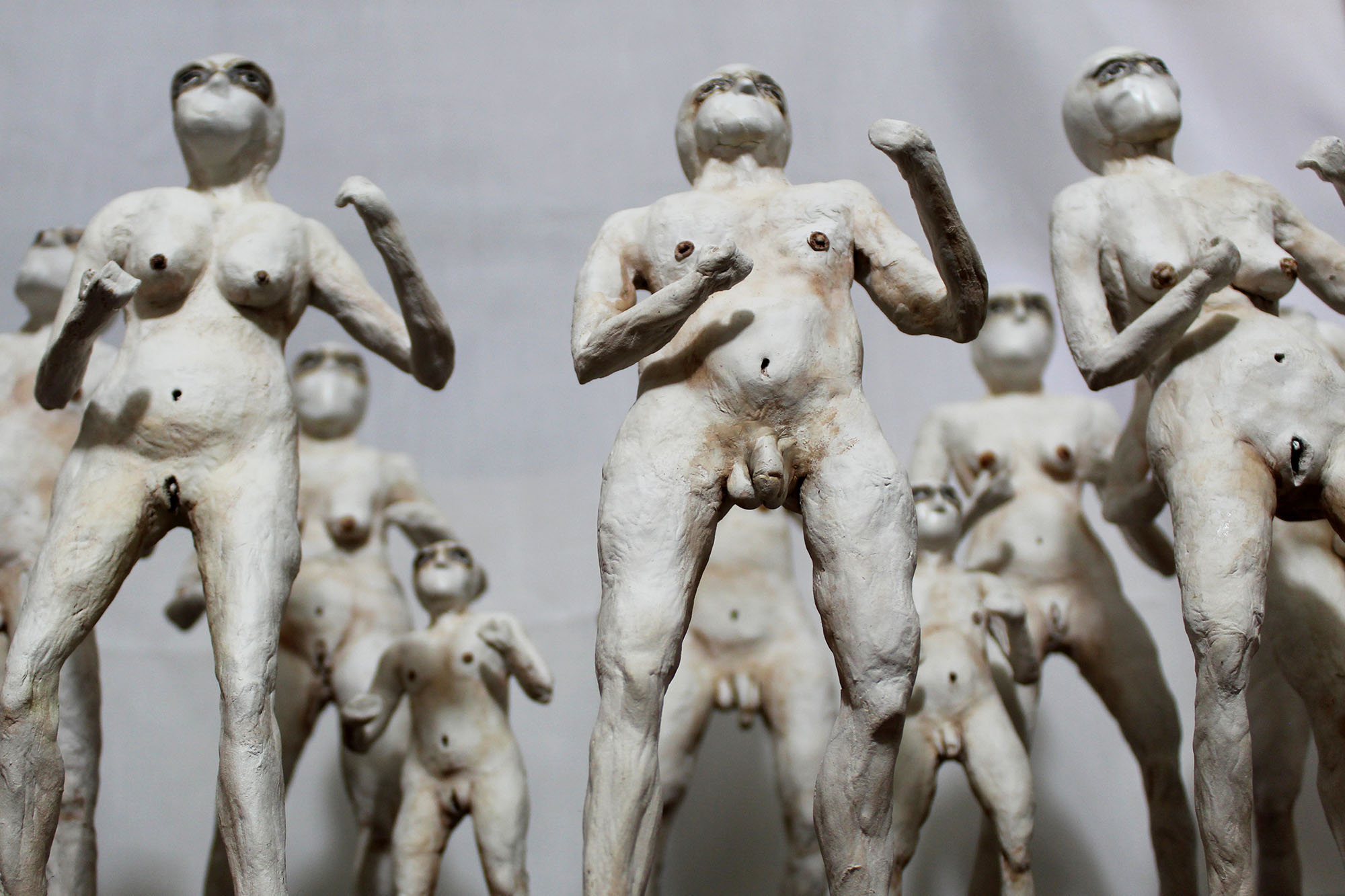En esta obra, aunque cada figurilla es diferente entre sí, todas mantienen una posición firme y de combate, una pose en defensiva, que hace alusión el
