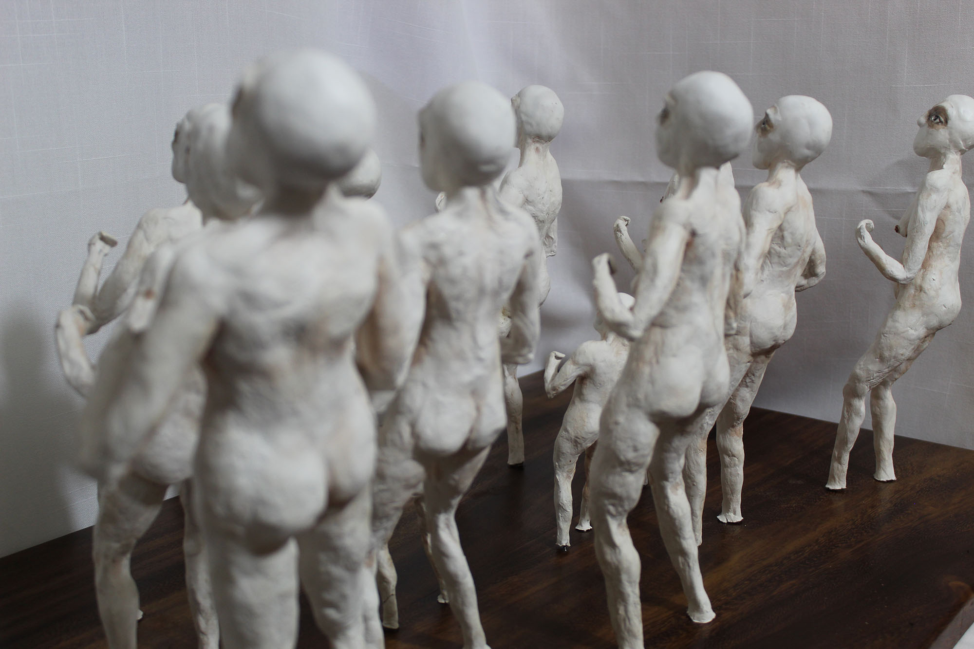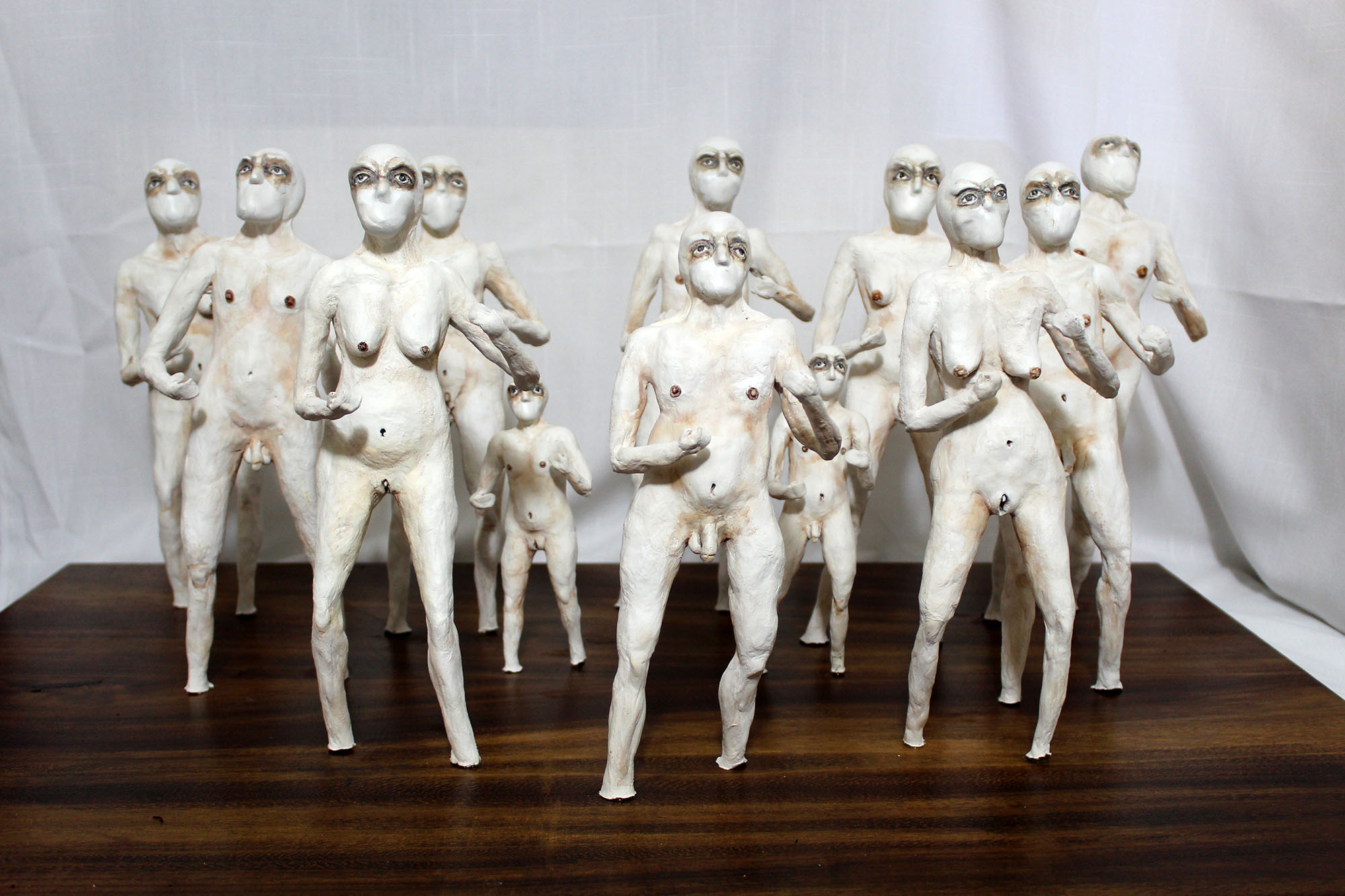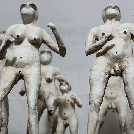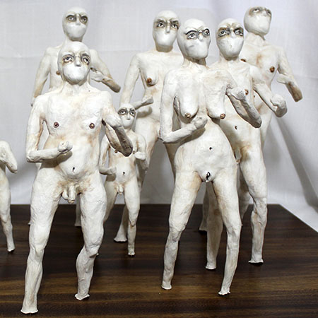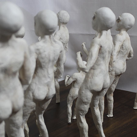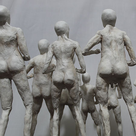 En esta obra, aunque cada figurilla es diferente entre sí, todas mantienen una posición firme y de combate, una pose en defensiva, que hace alusión el