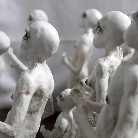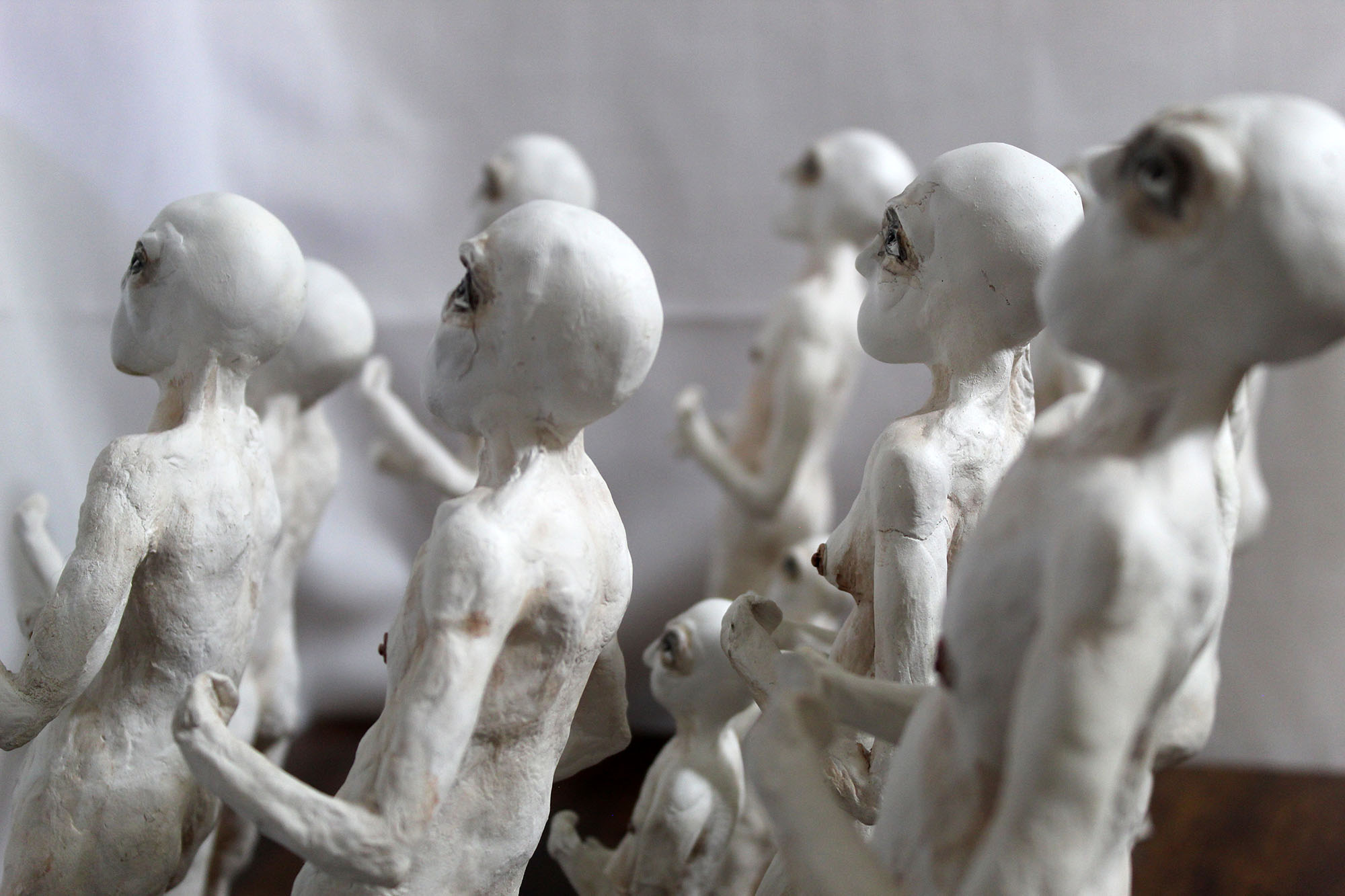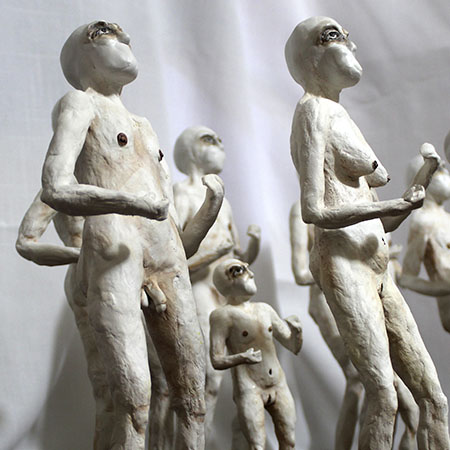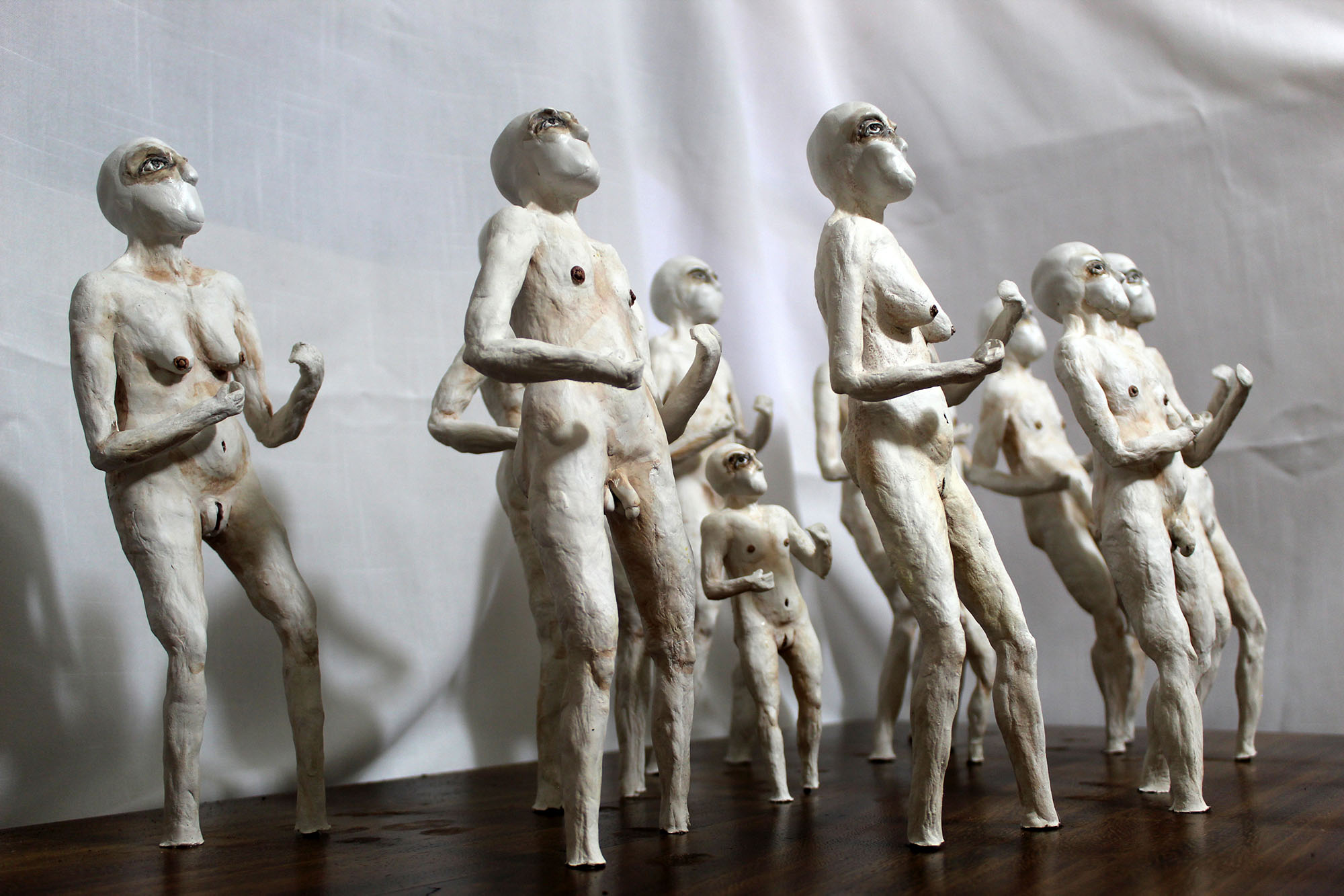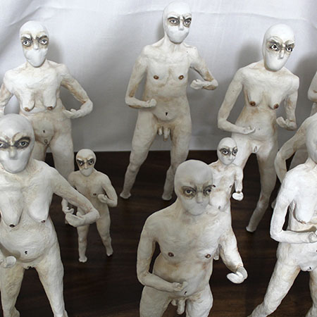 En esta obra, aunque cada figurilla es diferente entre sí, todas mantienen una posición firme y de combate, una pose en defensiva, que hace alusión el